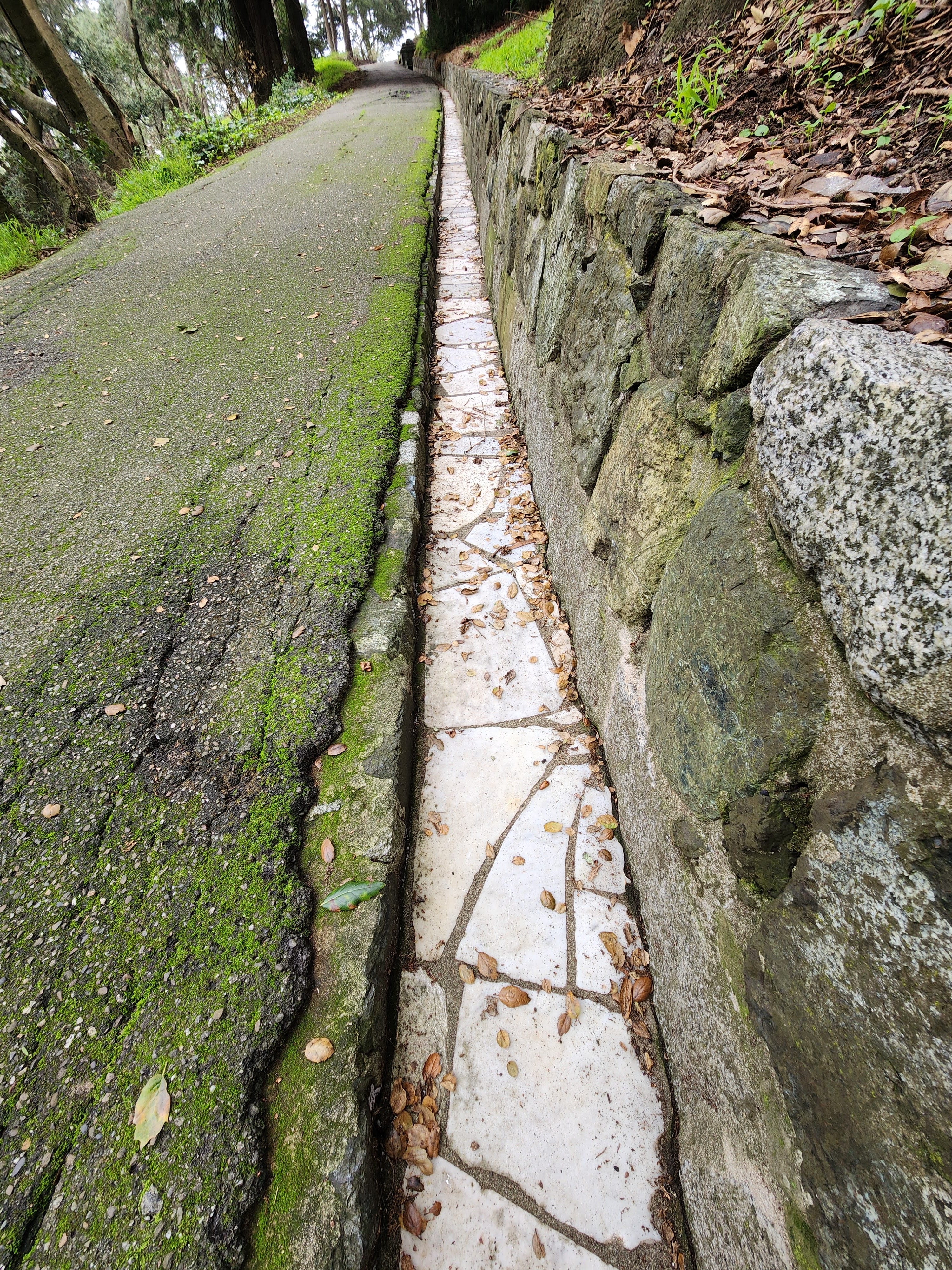 Established in 1867-68 as Hill Park, San Francisco’s Buena Vista Park feels like a forested escape room in the middle of the city. A spectacular mix of Coast Live Oak trees, decomposing wooden stairs nestled into slope sides, mossy paved trails, and pieces of grave markers artfully arranged at your feet.